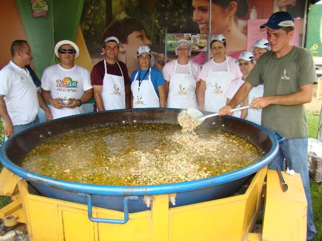 Ingredientes: 2 kilos de maíz criollo entero, 2 kilos de posta de cerdo, 2 kilos de costilla de cerdo, 3 chiles dulces, 1/2 mata de apio picado, 3 rollos de culantro picado, ajos, orégano y tomillo seco, laurel, sal y pimienta al gusto.