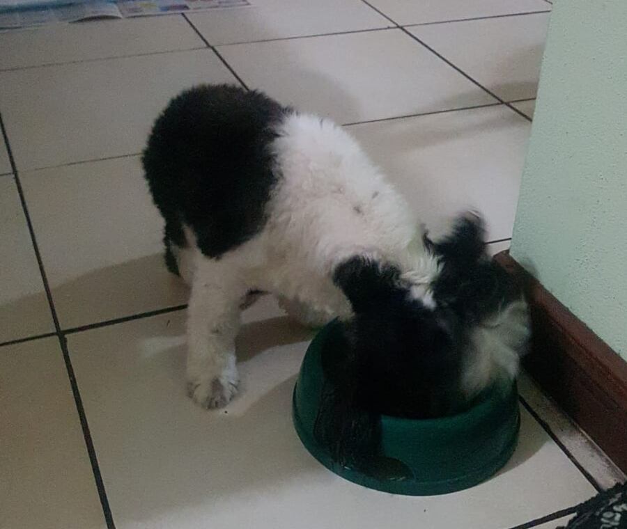 El pelutido volvió un poco tristón y con un montón de nudos en el pelo, pero sano y salvo que es lo importante. Lo primero que hizo cuando llegó fue comer de su tacita, probablemente la extrañó.