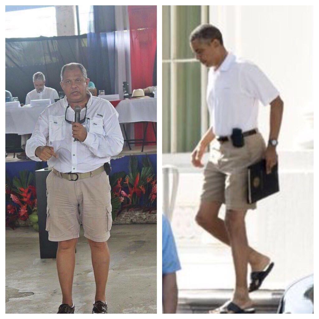 Incluso, los memes no se hicieron esperar y compararon a Solís con el expresidente de Estados Unidos Barack Obama, quien lució en alguna ocasión un pantalón corto muy parecido. La diferencia, aparte de la pinta, es que Obama no atendía ningún acto oficial en ese momento.