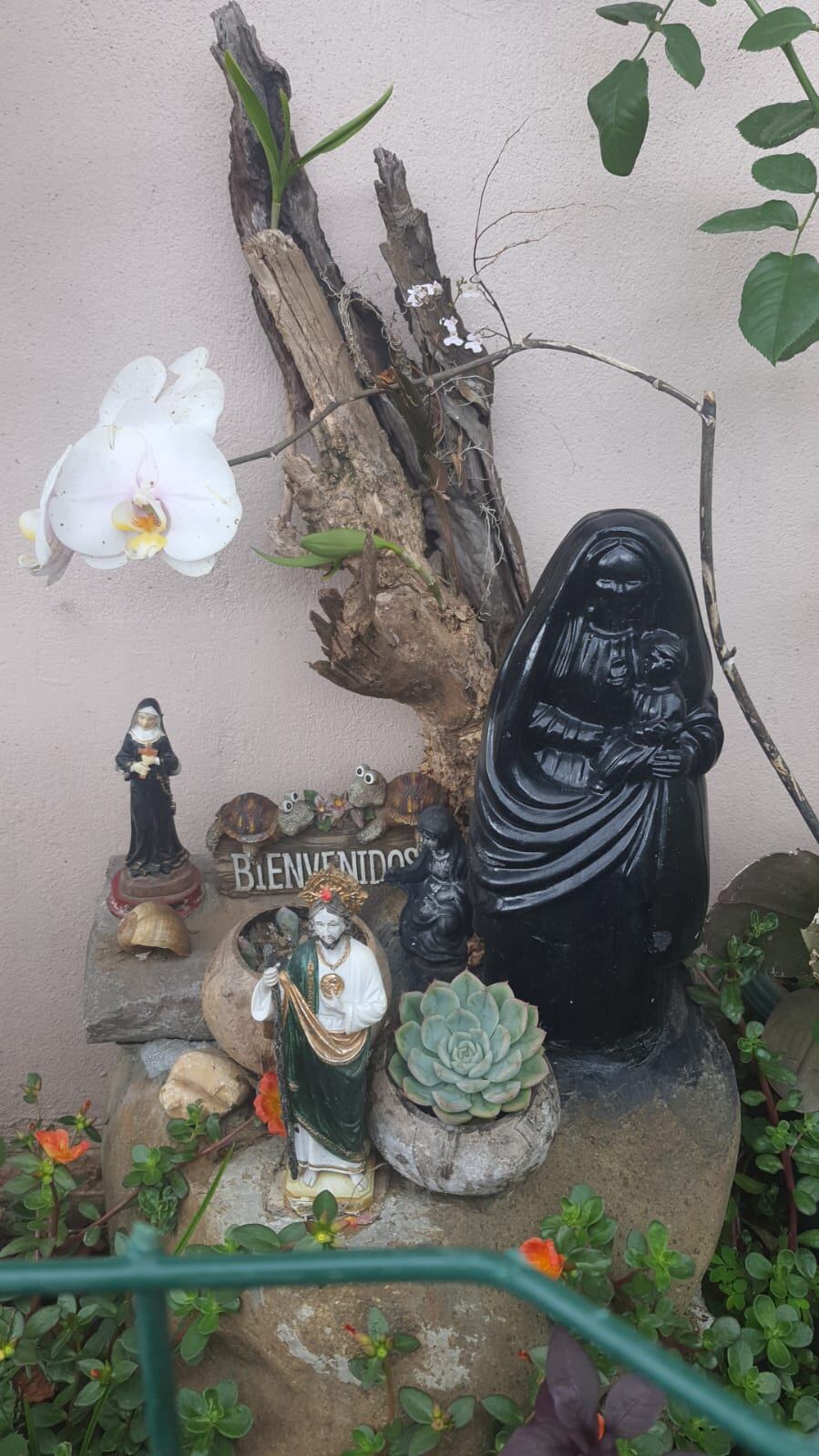 Después de la durísima experiencia, mientras revisaban los escombros y recogían basura, la familia encontró dos imágenes de María: una era de un pasito que tenían en la sala y quedó negrita, como carbonizada, pero completa, y la otra era una Virgen de Los Ángeles que su esposo había chorreado con cemento usando como molde una botella de plástico de las que venden para guardar agua bendita.