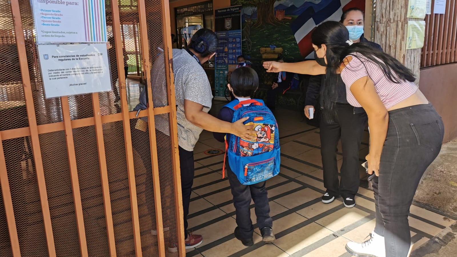Mary Carmen Arroyo y Henry Pérez se levantaron bien temprano este jueves para ir a dejar a su hijo Abdy Matías Pérez, a la escuela Manuel Ortuño Boutín, en San Rafael Arriba de Desamparados.