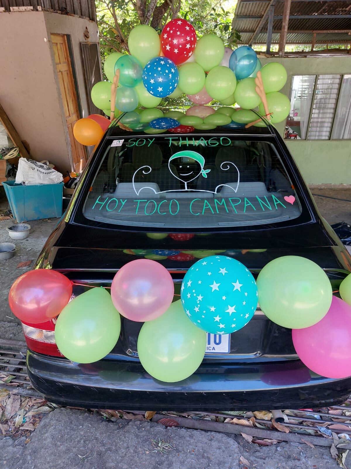 “El día que tocó la campana decoré el carro con bombas y hasta hicimos camisetas, porque yo quería compartir mi alegría con todo el mundo, quería que la gente supiera que mi hijo está sano y agradezco a Dios por eso”.