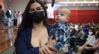 Cuando llegó la hora de ir a recoger el título no le pensó dos veces, alzó al pequeño Mathías y se fue con él para vivir juntos ese momento tan especial.