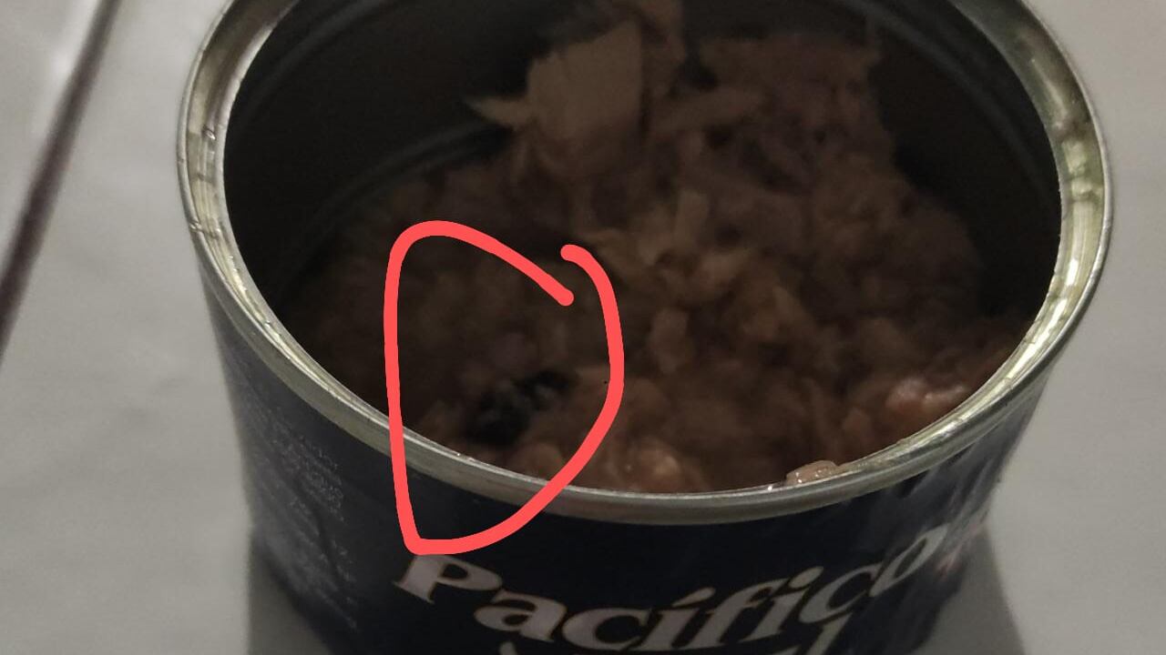 La cena de una madre alajueliteña que está a días de dar a luz a su segundo hijo, se vio interrumpida por una desagradable sorpresa, ya que le apareció una piedra en la lata del atún que se comía.
