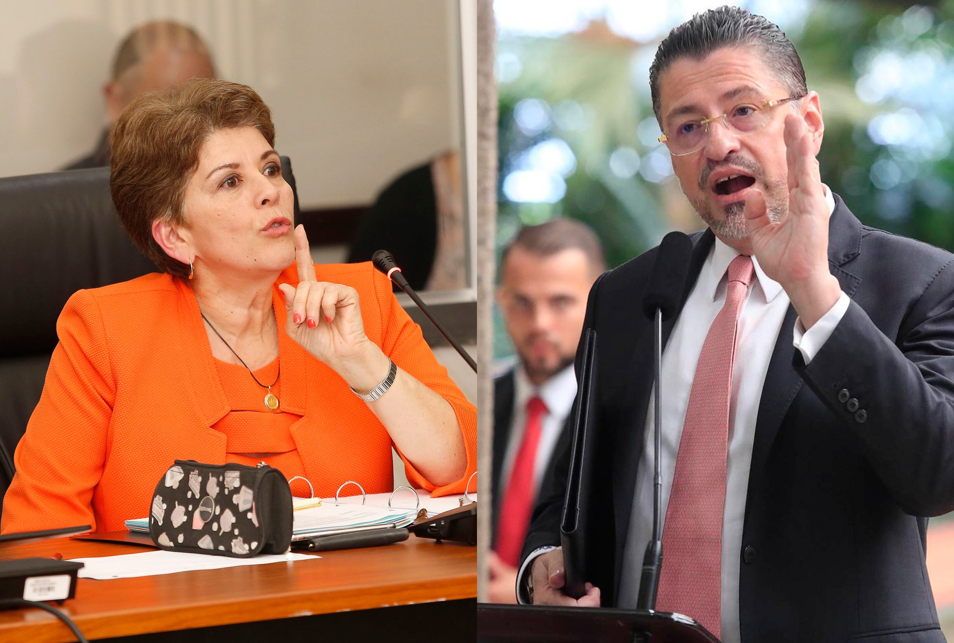 “La Contraloría interpreta la ley a su antojo diciendo que lo que se construya con 854 millones de dólares del sector privado, es obra pública, diay su casa es obra pública señora bajo ese concepto... ya le mandamos a la Contraloría cartas, cartas vienen, cartas van, y me van a acusar de ser grosero porque ya me sancionaron en la Asamblea por decir que una diputada estaba sentada en la galleta, la contralora está sentada en la galleta y no se va a mover, la pregunta es: ¿cómo vamos a hacer para que la Contraloría se deje de sentar en la galleta y por lo menos se quede callada y que permita la aplicación de la ley que ya exista, sin interpretaciones arbitrarias”, dijo Chaves.