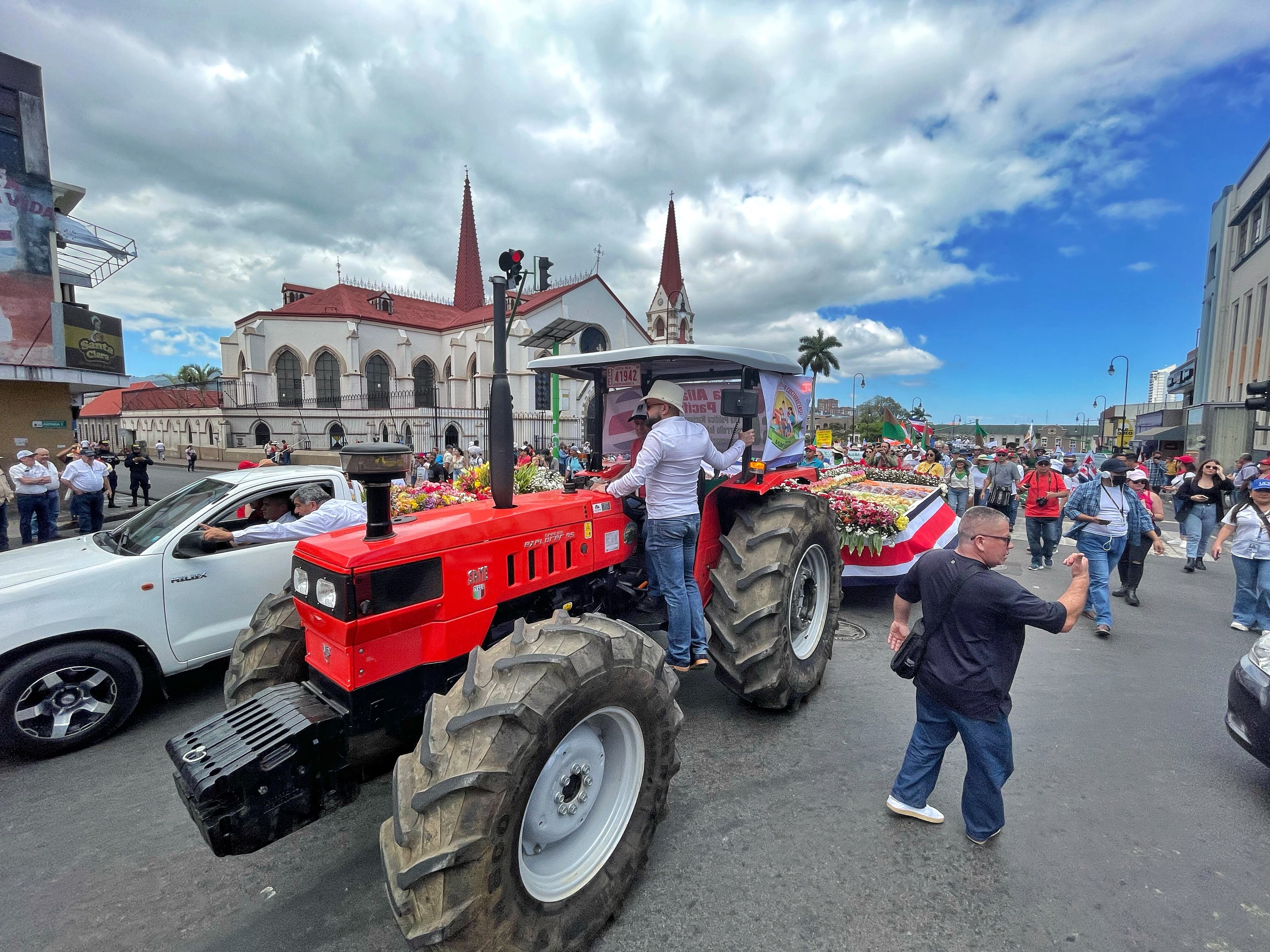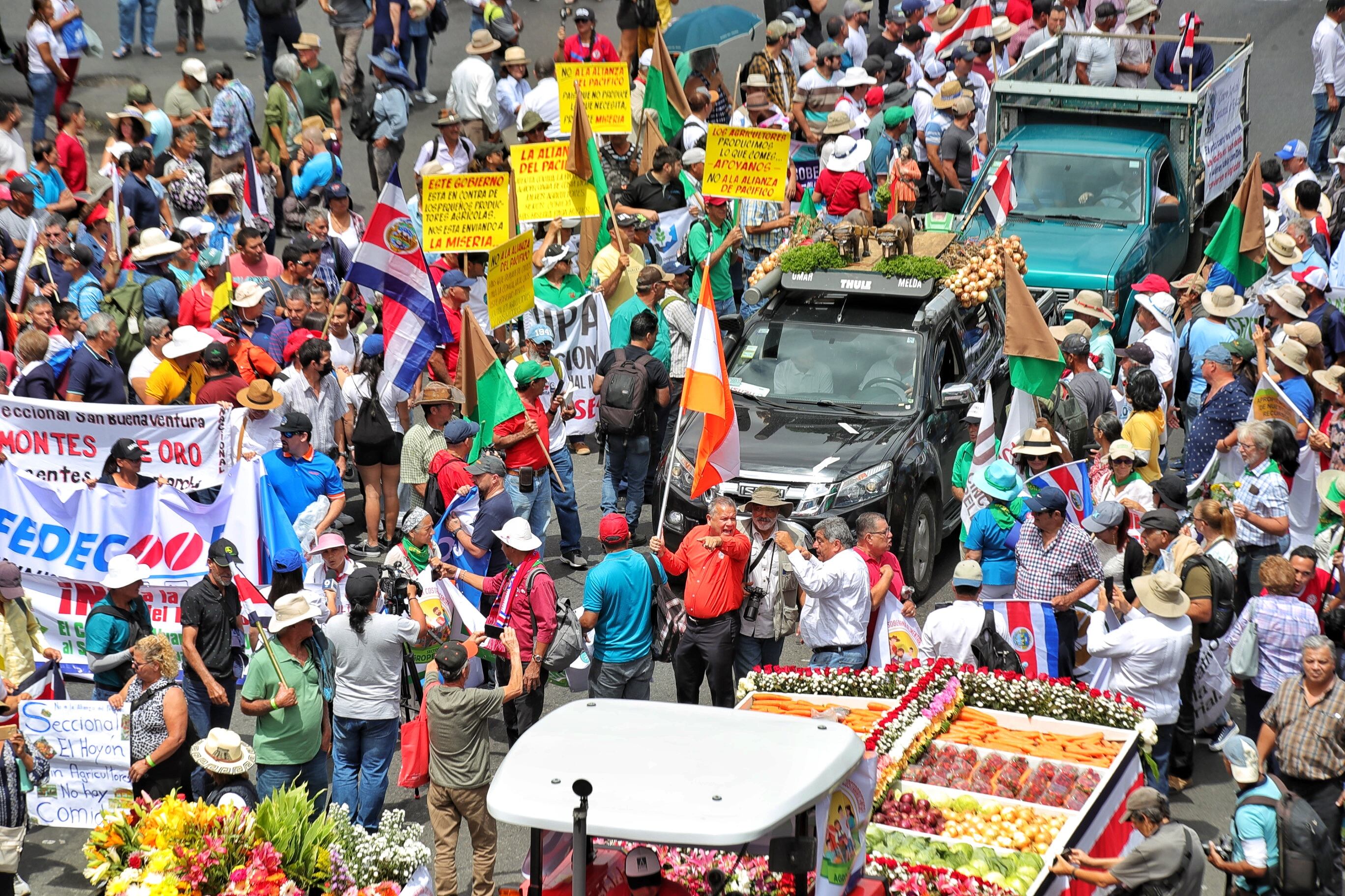 Él fue uno de los cientos de manifestantes que caminaron desde el parque La Merced hasta la Asamblea Legislativa en busca de soluciones para el sector agrícola, el cual se siente abandonado y en crisis.