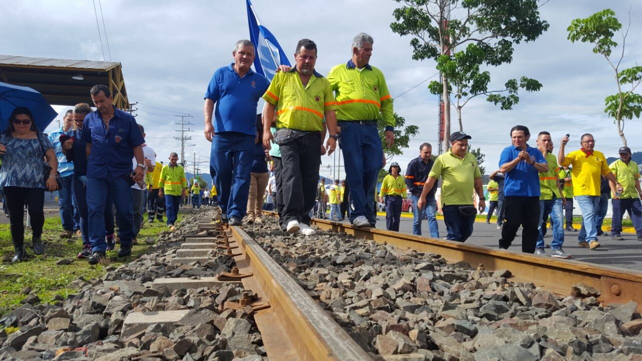 Los primeros en bloquear el paso fueron los empleados de la municipalidad de San José que se subieron a la locomotora y así parar el avance por el sector del Mercado de Mayoreo.
