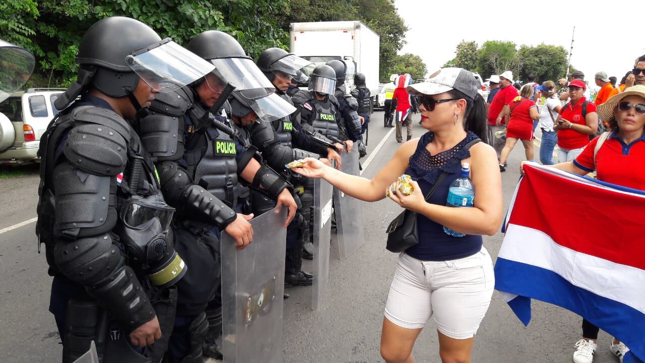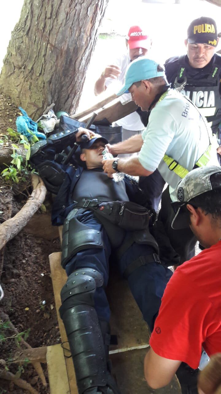 Algunos policías se han visto afectados por las altas temperaturas del Pacífico nacional. Ellos han tenido que ser atendidos en primera instancia por los manifestantes, quienes los ayudaron a acostarse en la sombra y les dieron agua, galletas y confites para recuperar energías.