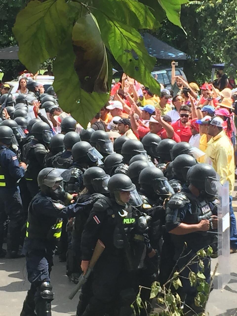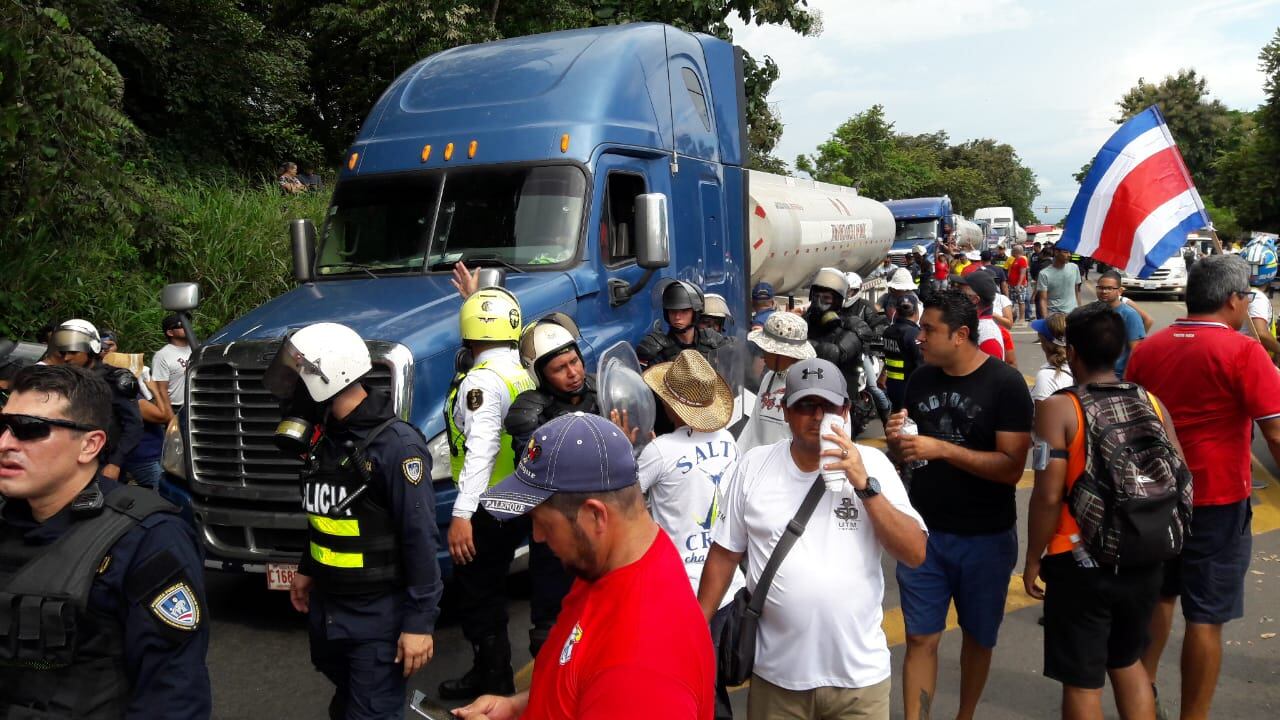 Los oficiales de la Fuerza Pública están en el cruce de Barranca, Puntarenas, para tratar de garantizar el paso de ocho cisternas cargados con combustible que se dirigen con dirección a Guanacaste, así como los turistas y vecinos que se dirigen hacia las playas o regresan de ellas.