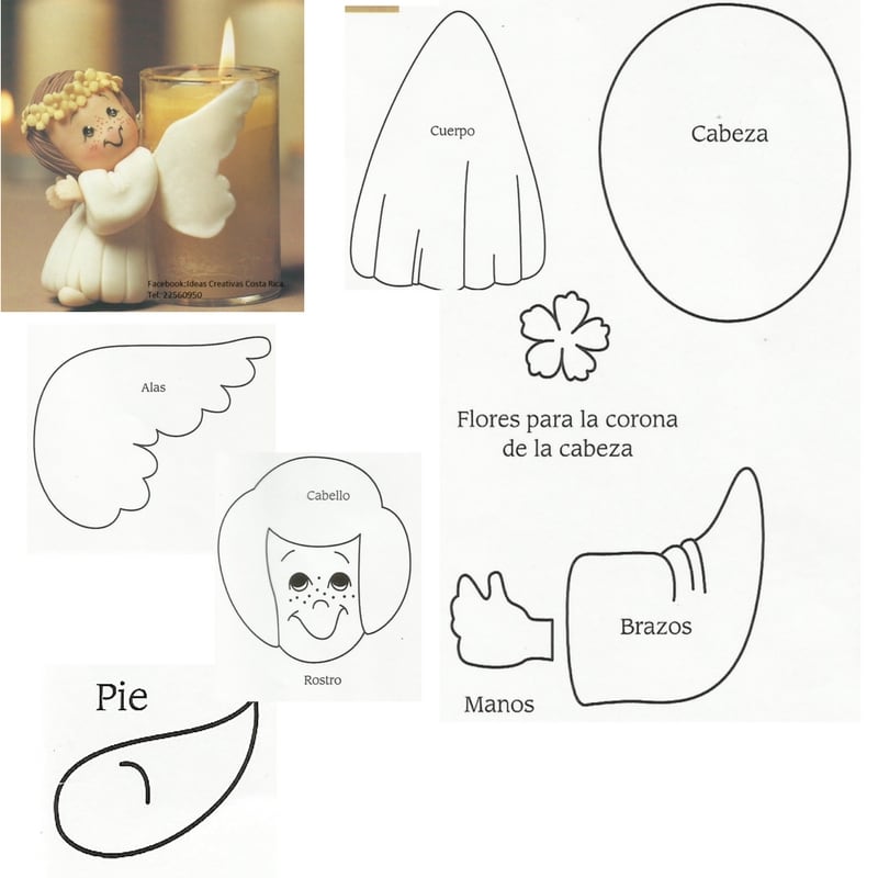 Por último, con el molde de las alas hágalas en la pasta y pegue a la vela con la goma blanca. También debe unir todas las piezas con la goma blanca y fijar en el vasito. Solo nos queda hacerle los ojos con un pincel fino.