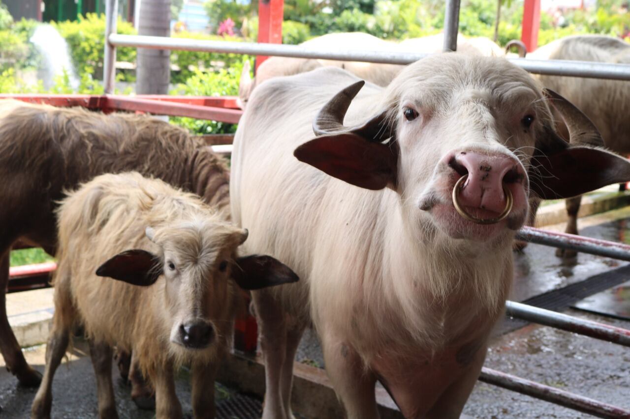 “En el área de animales domésticos hay toros, bueyes, vacas, búfalos negros, blancos y cafés, caballos, burros, ponis, terneros, ovejas, cabras, conejos y perros San Bernardo. Nosotros le damos a todos los animales su cuido diario, su alimentación, cuidados médicos y tratamos de que la ambientación sea muy similar a la de ellos en su hábitat natural”, explicó la colaboradora.