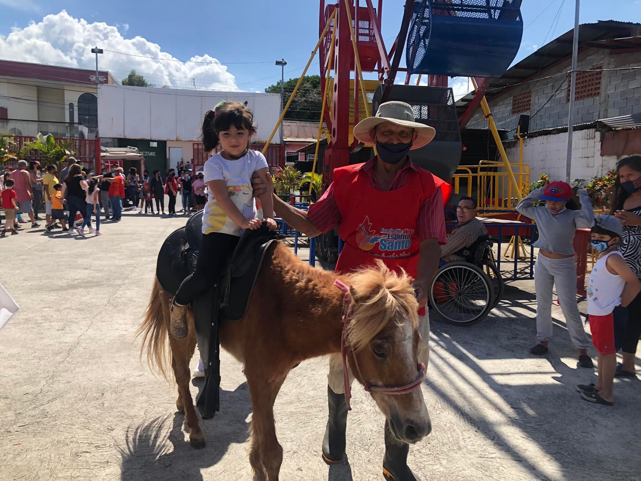 Ella contó que los niños que visitan el parque tienen la oportunidad de montar a caballo y tomarse fotos con los ponis y burros, eso también los hace muy felices.