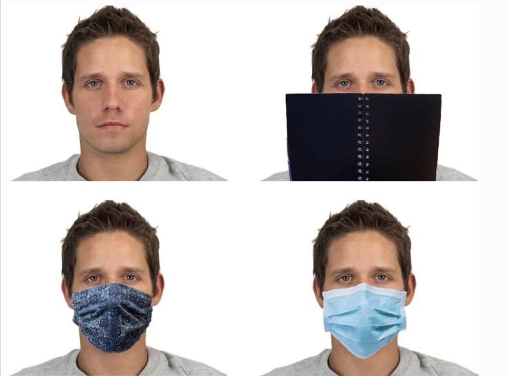 Las opciones que les dieron fueron hombres con el rostro cubierto por una mascarilla quirúrgica, otros vistiendo una de tela, en otras imágenes el hombre se cubría de los ojos para abajo con un cuaderno y en otras salía a cara descubierta. Los resultados terminaron sorprendiéndolos.