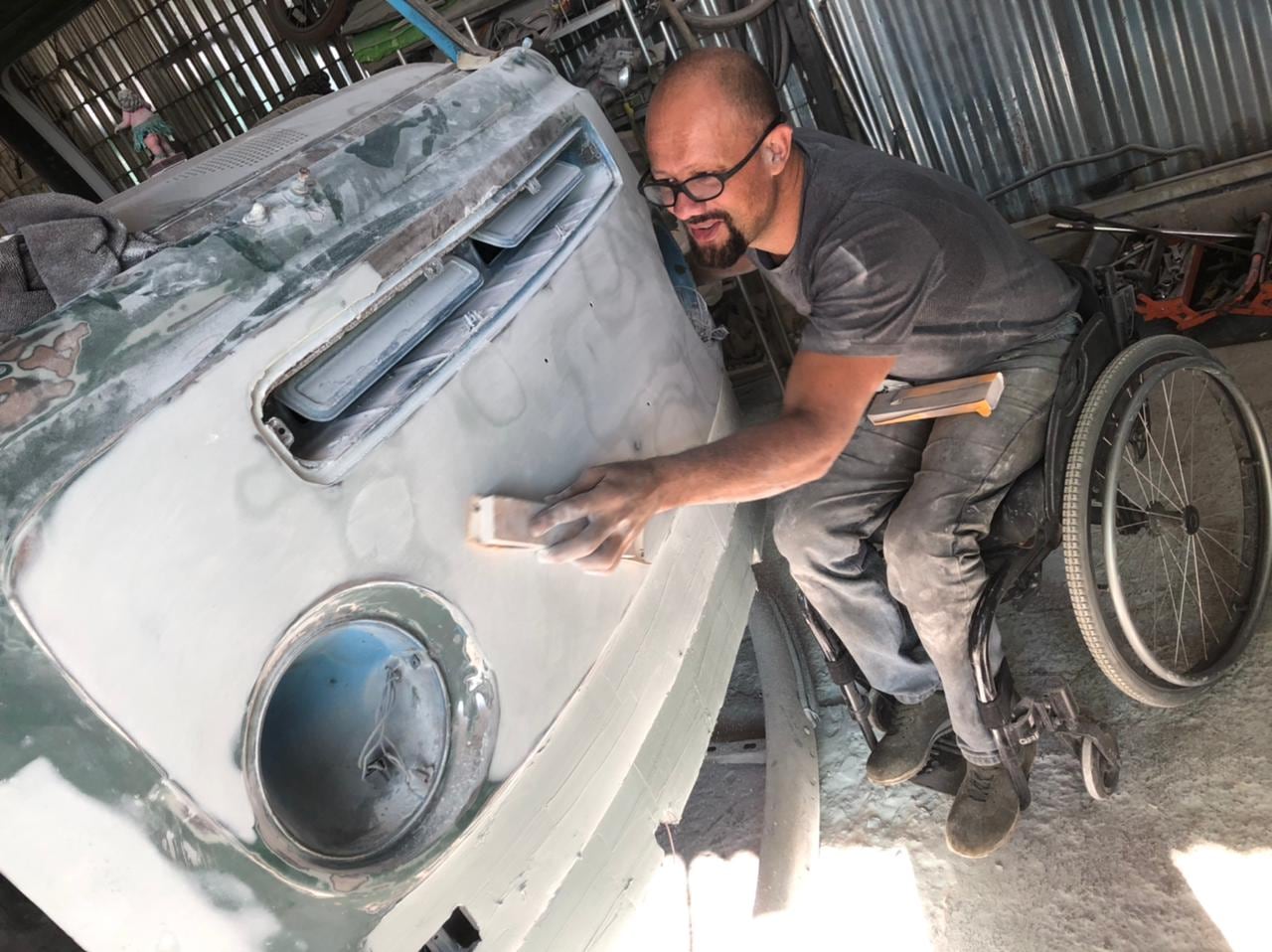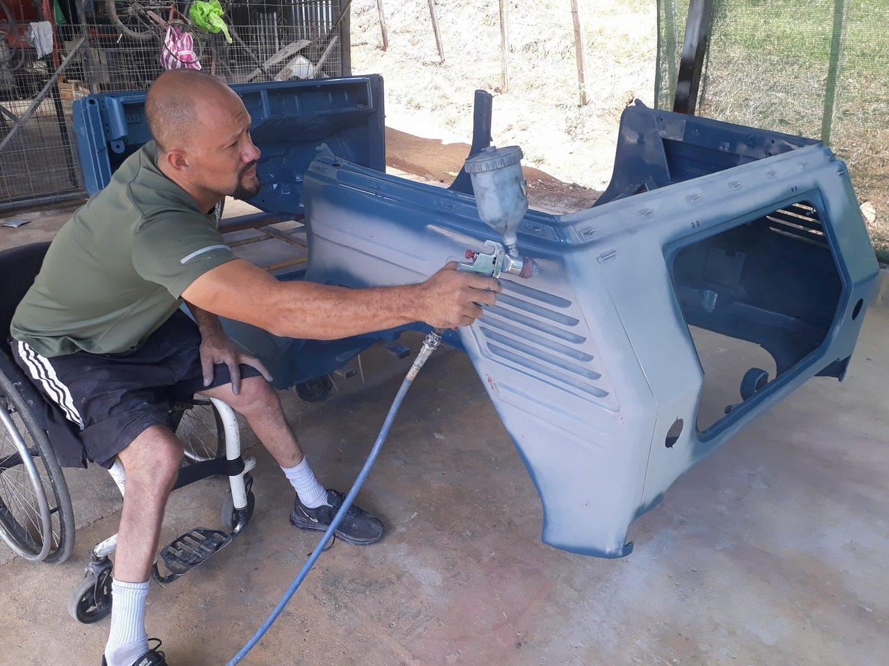 Los conocimientos los adquirió en su época de estudiante, cuando trabajó en talleres de enderezado y pintura. Esa experiencia lo motivó a retirarse del atletismo en juegos paralímpicos, en el 2015, para dedicarse a la restauración.