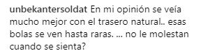 El usuario, identificado como unbekantersoldat le comentó: “En mi opinión se veía mucho mejor con el trasero natural… esas bolas se ven hasta raras... no le molestan cuando se sienta?”.