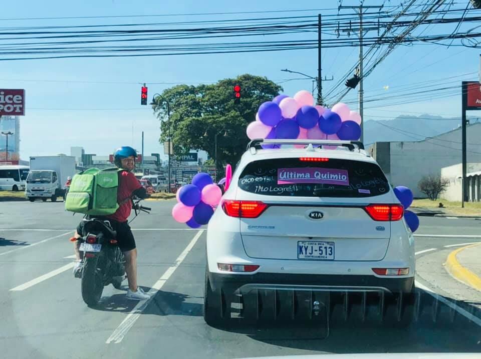 “Te tengo una sorpresa, ¿la quieres ya o mañana?, me dijo la noche del lunes. Le dije que mejor me la diera al día siguiente. Cuando amaneció y bajamos a la cochera, vi mi carro decorado con globos y me dio la calcomanía que decía ‘última quimio’”.