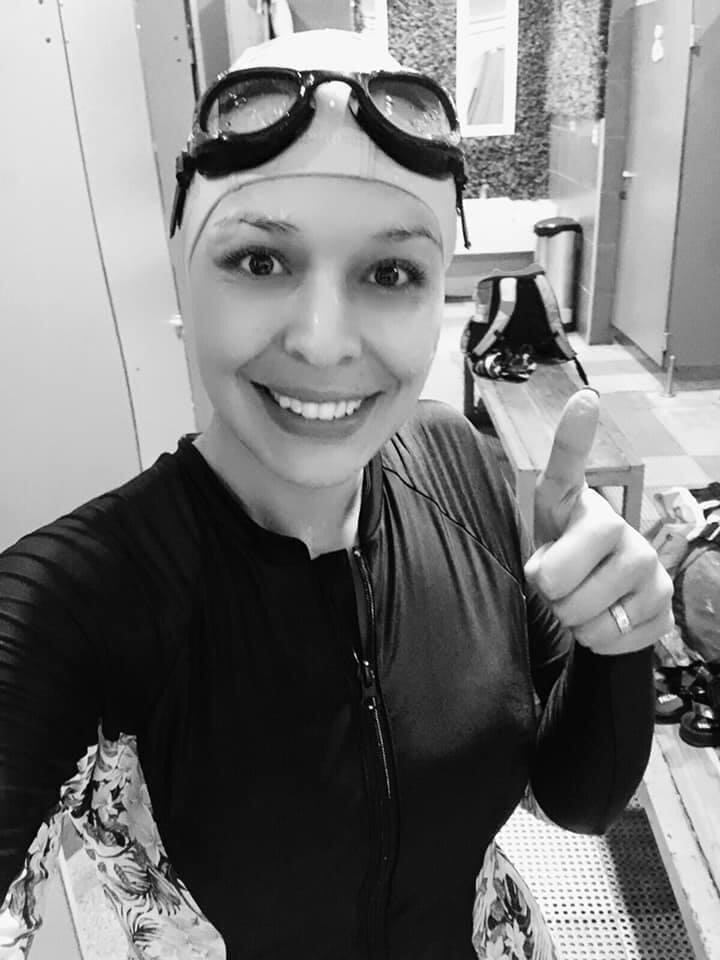 Estamos frente a una mujer que no se deja vencer fácilmente pese a los efectos tan fuertes de la quimioterapia, que la volcaban toda la semana en cama. No podía comer sin que le dieran náuseas y cansancio, pero en la semana que estaba bien, tomó clases de natación y puso su propio negocito.