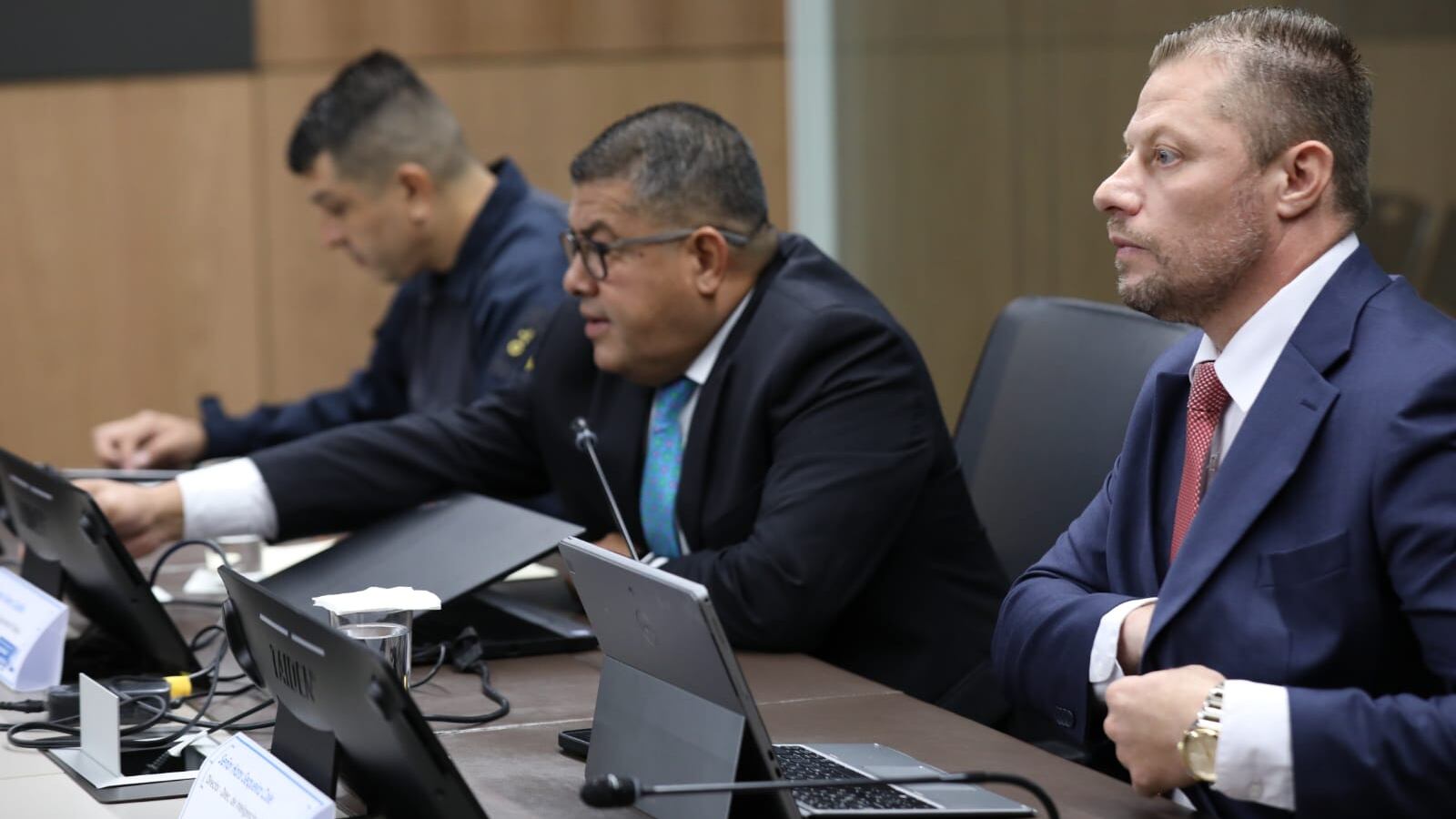 El jerarca asistió al Congreso en compañía de Daniel Calderón, director de la Fuerza Pública y viceministro de Seguridad; Marlon Cubillo, director de la Fuerza Pública de San José, y Hans Sequeira, director de la Dirección de Inteligencia y Seguridad Nacional (DIS).