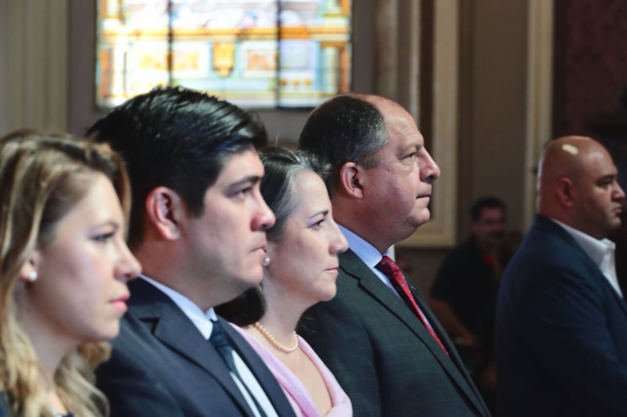 Algunos de los fieles católicos presentes en la catedral de Chepe aprovecharon los minutos antes de la misa para tomarse fotos con Carlos Alvarado y su esposa Claudia Dobles.