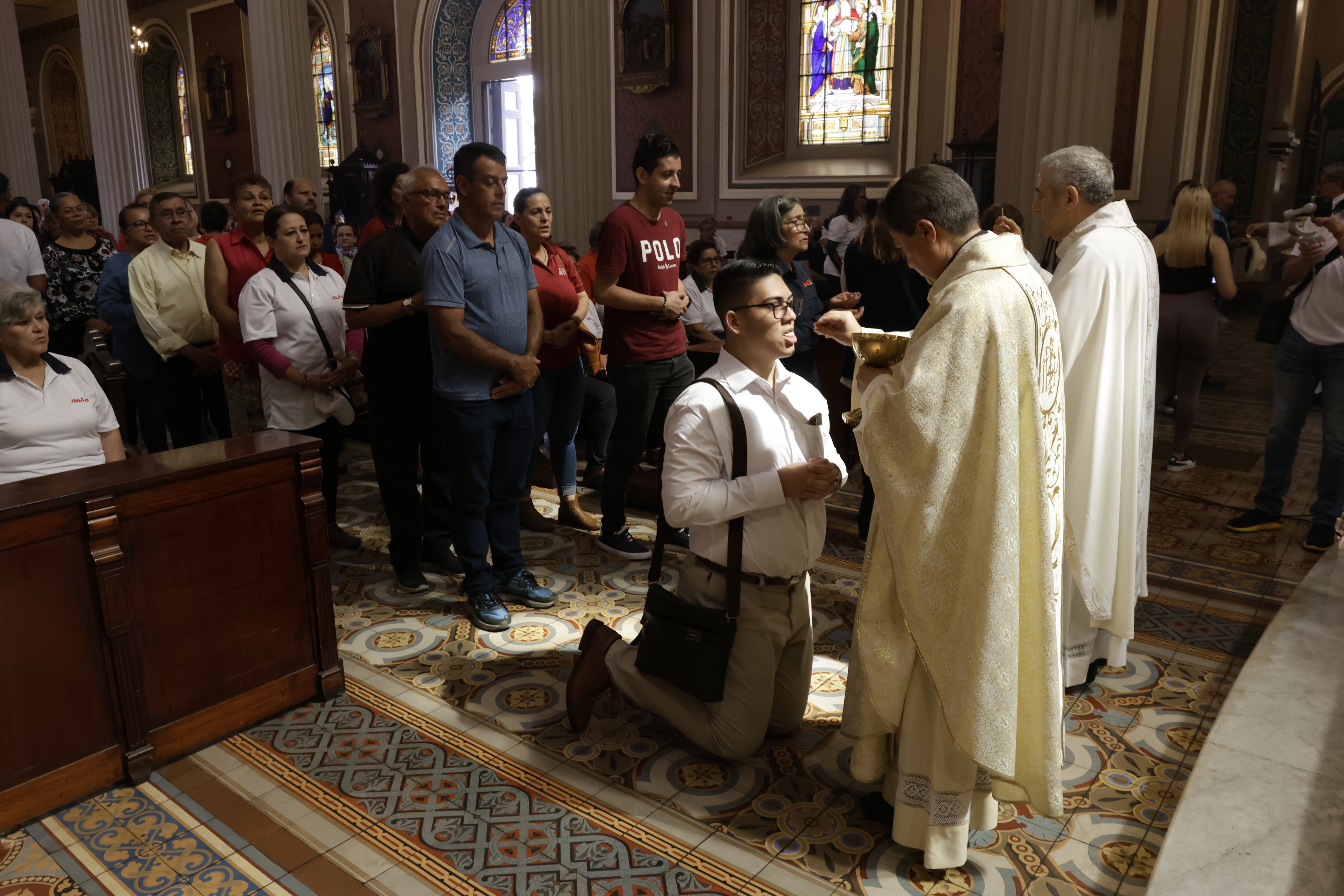 La misa de la mañana en la Catedral Metropolitana estaba a reventar, había muchos sindicalistas y al final, hasta un queque le llevaron a monseñor Quirós, porque este 1 de mayo está cumpliendo 68 años.