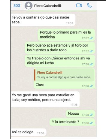 “Te voy a contar algo que casi nadie sabe. Yo me gané una beca para estudiar en Italia, soy médico, pero nunca ejercí”, dice Vargas en una de las conversaciones.