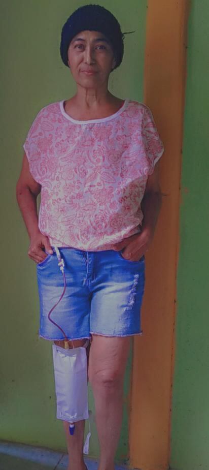 Como parte de los medicamentos, cada vez que va al San Juan de Dios le ponen una bolsa de tratamiento que recibe de forma intravenosa y se la quitan 46 horas después en el hospital Tomás Casas, eso también la da una fuerte reacción en su salud.
