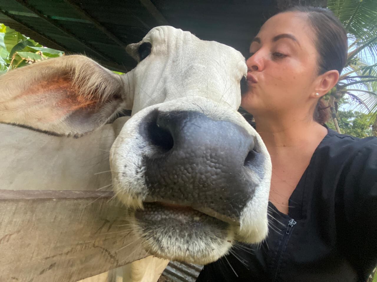 “Es como una vaca perro, yo la amarro con un mecate y la paseo por todo lado, le doy besos, le hago cariño y ella es buena, tranquila y muy chineada. Pero no tengo el espacio suficiente para tenerla en mi casa, la llevé a una finca y la atacaron unos perros y casi me la matan, quiero buscarle un lugar más adecuado”, narró.