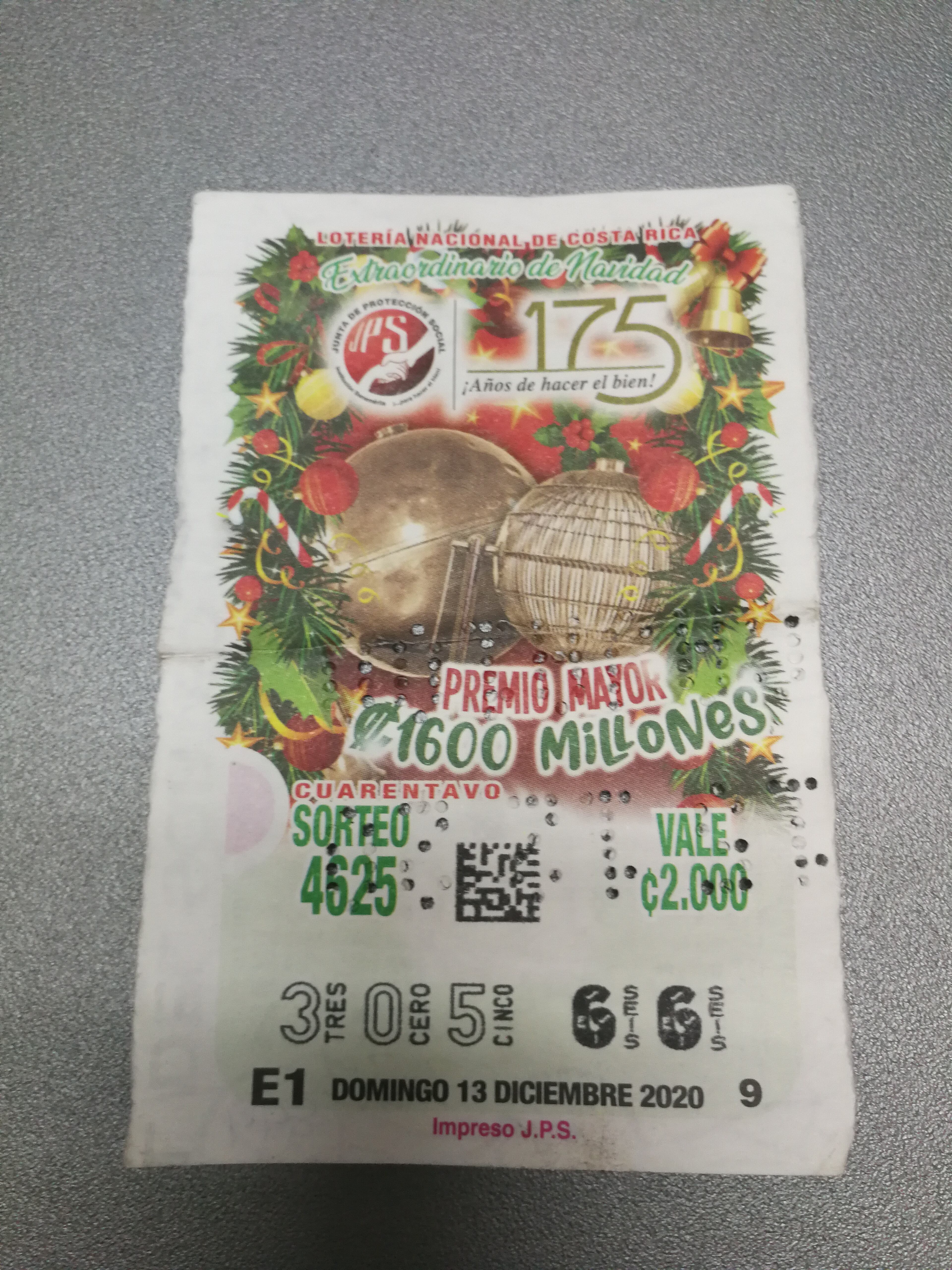 Cuando la afortunada llegó a la Junta de Protección Social (JPS) con su pedacito de lotería bien guardado y la ilusión al tope, le contó a los funcionarios de la institución que ella había comprado lotería en Alajuelita y en Puntarenas, entonces no tenía claro cuál de los dos lugares la convirtió en millonaria.