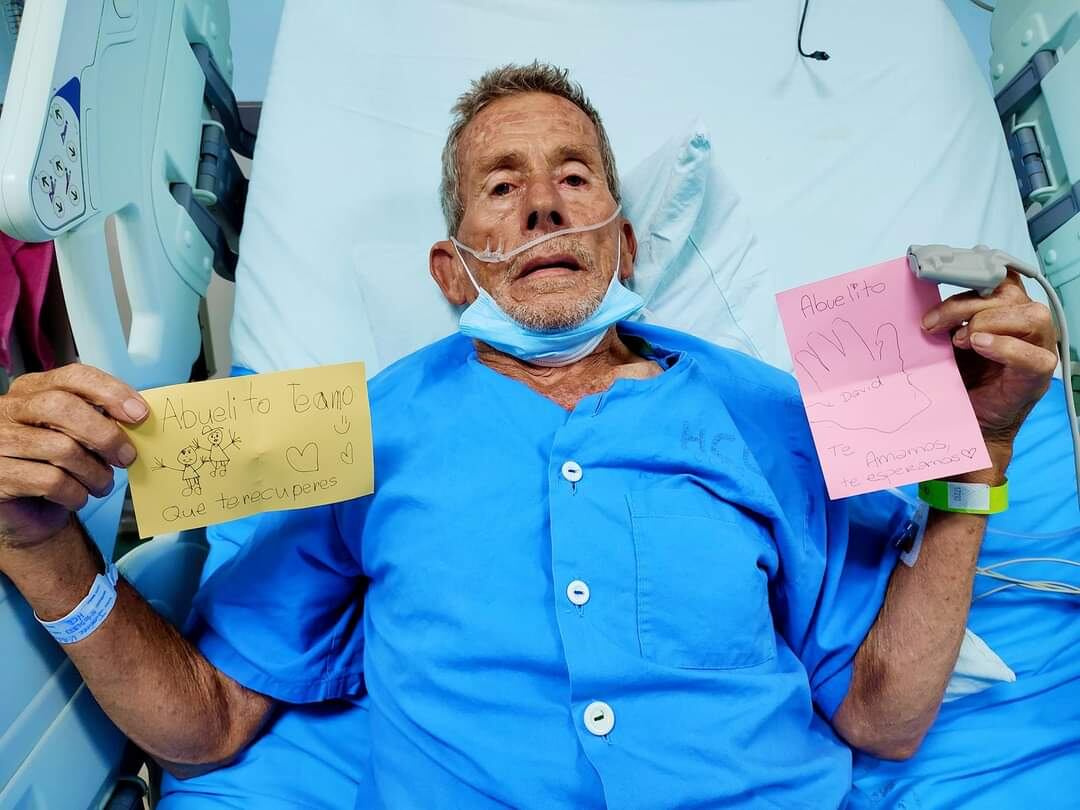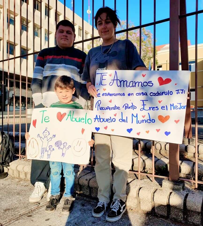 “A ellos no los dejan entrar al hospital, pero como mi papá está internado en un salón con ventana que da a la explanada que está frente al hospital, el domingo hicimos varios carteles y llevamos a los chiquillos para que mi papá los pudiera ver. Ya cuando estábamos listos lo llamé y le dije que se asomara a la ventana y se sorprendió mucho, jamás se esperaba algo así; fue una manifestación pacífica y llena de amor”, contó Ronny.