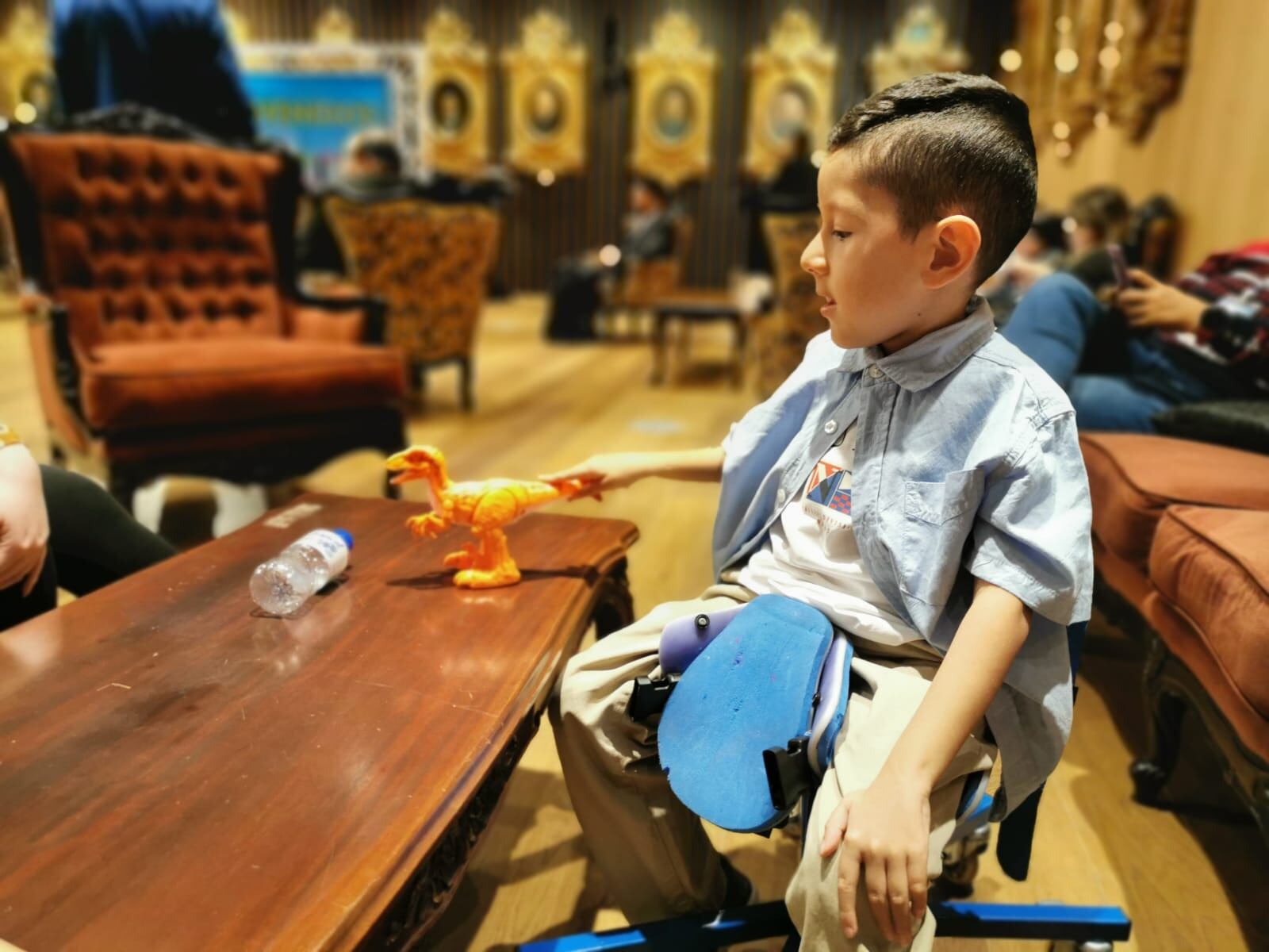 El pequeño luchador se moviliza con la ayuda de una sillita especial que tiene ruedas y aunque no tiene la misma fuerza que otros niños, puede jugar y comer solito.