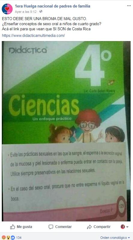 En redes sociales se está compartiendo una imagen descontextualizada para afirmar que en cuarto grado de escuela se está instruyendo sobre la práctica de sexo oral. La página compartida está incompleta y en realidad aborda medidas para evitar el contagio del VIH (Virus de Imunodeficiencia Humana, causante del sida).