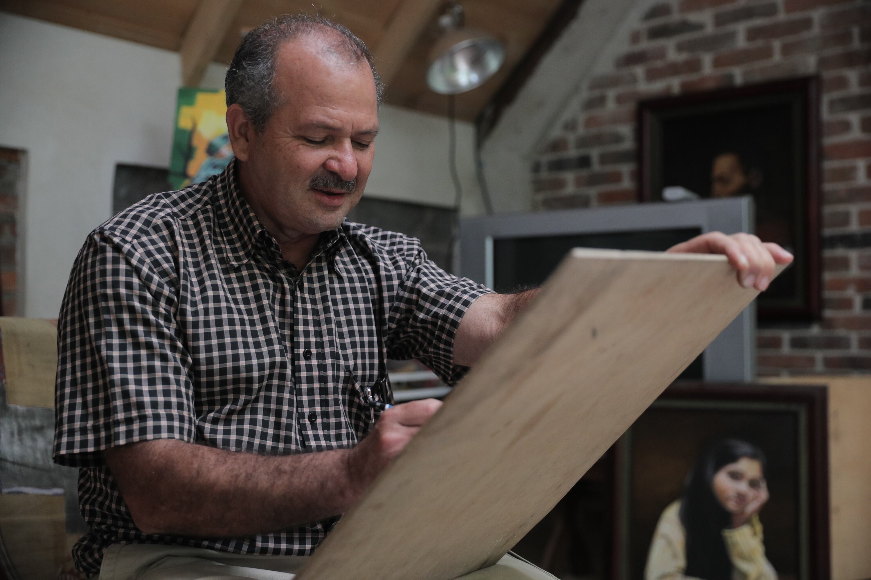 “Desde niño me gustó el arte, pero yo no tenía el dinero para comprar pinturas ni nada así, entonces, lo que hacía era hacer esculturas de barro y las metía debajo de la cama para que se secaran”.