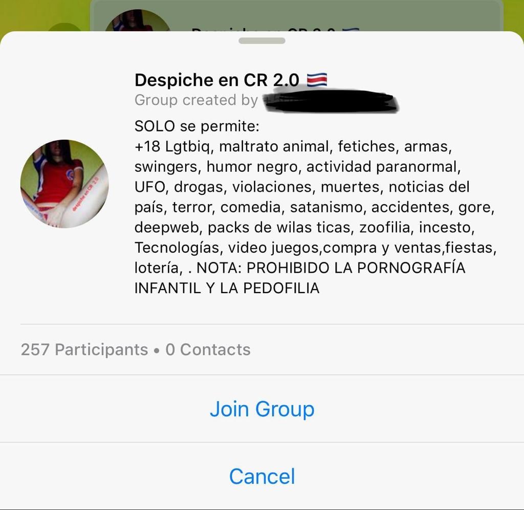 Otros miembros entran a preguntar: “¿Tienen fotos de (X) chica?”, “¿Tienen fotos de güilas que trabajen en (X) lugar?”, “¿Fotos de güilas de Moravia?”, “¿Qué saben de ella, hay fotos?”.