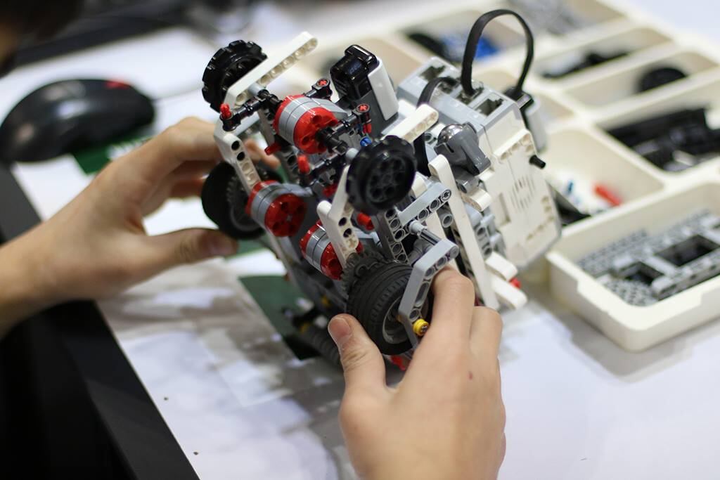 Por ejemplo, si el robot se encuentra un cubo rojo dentro de un área blanca, tiene que agarrar un árbol rojo y llevarlo al área blanca, mediante un sensor que ellos le colocan al robot para que este se la juegue por su cuenta.