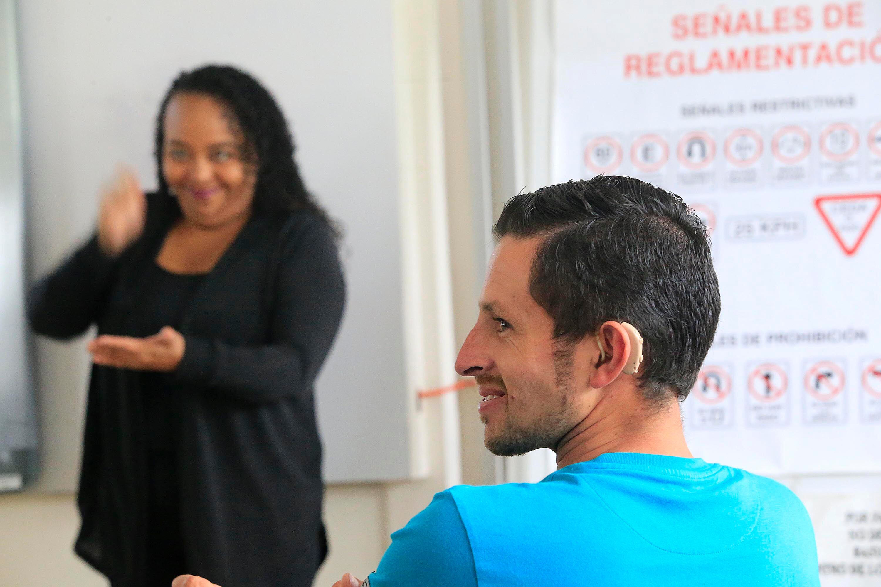 Quirós, quien tampoco escucha nada, le pidió a las autoridades de Seguridad Vial, en el 2015, que contrataran intérpretes de Lesco para matricular el curso teórico de manejo.