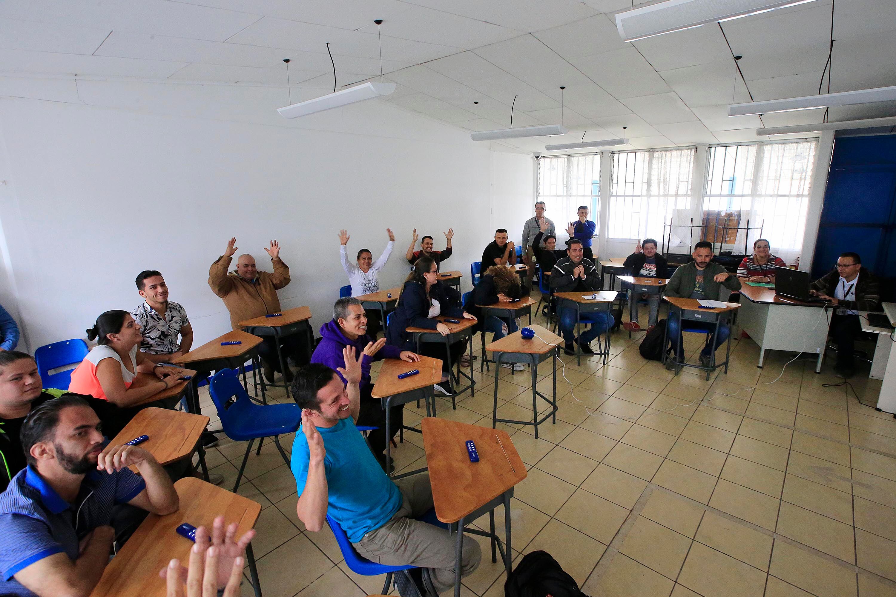 Durante la prueba se proyecta un video con las 40 preguntas, en el que se puede leer la pregunta, un intérprete la explica en Lesco y ellos deben responder con una especie de control remoto la opción correcta.