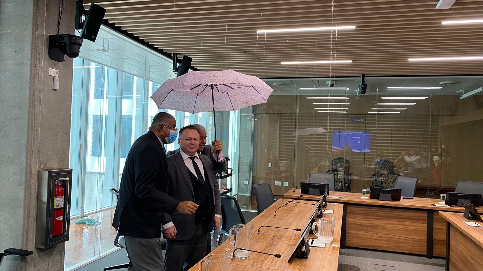 Nadie esperaría que en una construcción tan nueva y tan cara ocurran hechos como el que vimos el jueves, cuando un “aguacero” cayó desde el quinto nivel al cuarto, donde había varios diputados trabajando.