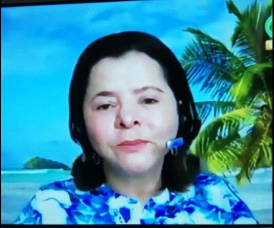 Resulta que la doctora habló usando la aplicación Zoom, primero en Giros y luego en Noticias Repretel, pero utilizó un fondo de playa el cual evita que se vea lo que hay detrás.