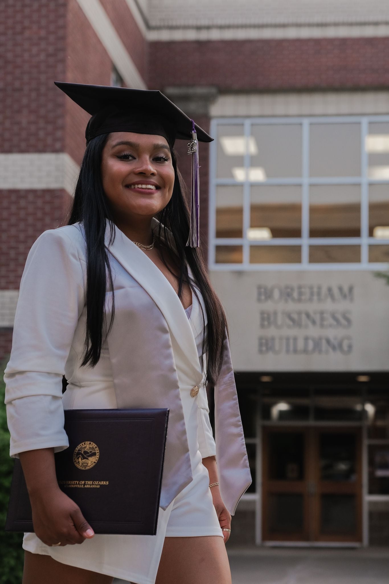 Ya una vez dentro de la universidad lo que seguía era ponerle al estudio, como siempre lo ha hecho, y sus excelentes calificaciones semestrales le permitieron graduarse el sábado 14 de mayo con la distinción magna cum laude (con grandes honores) como licenciada en dos carreras: administración de negocios y comunicación de medios.