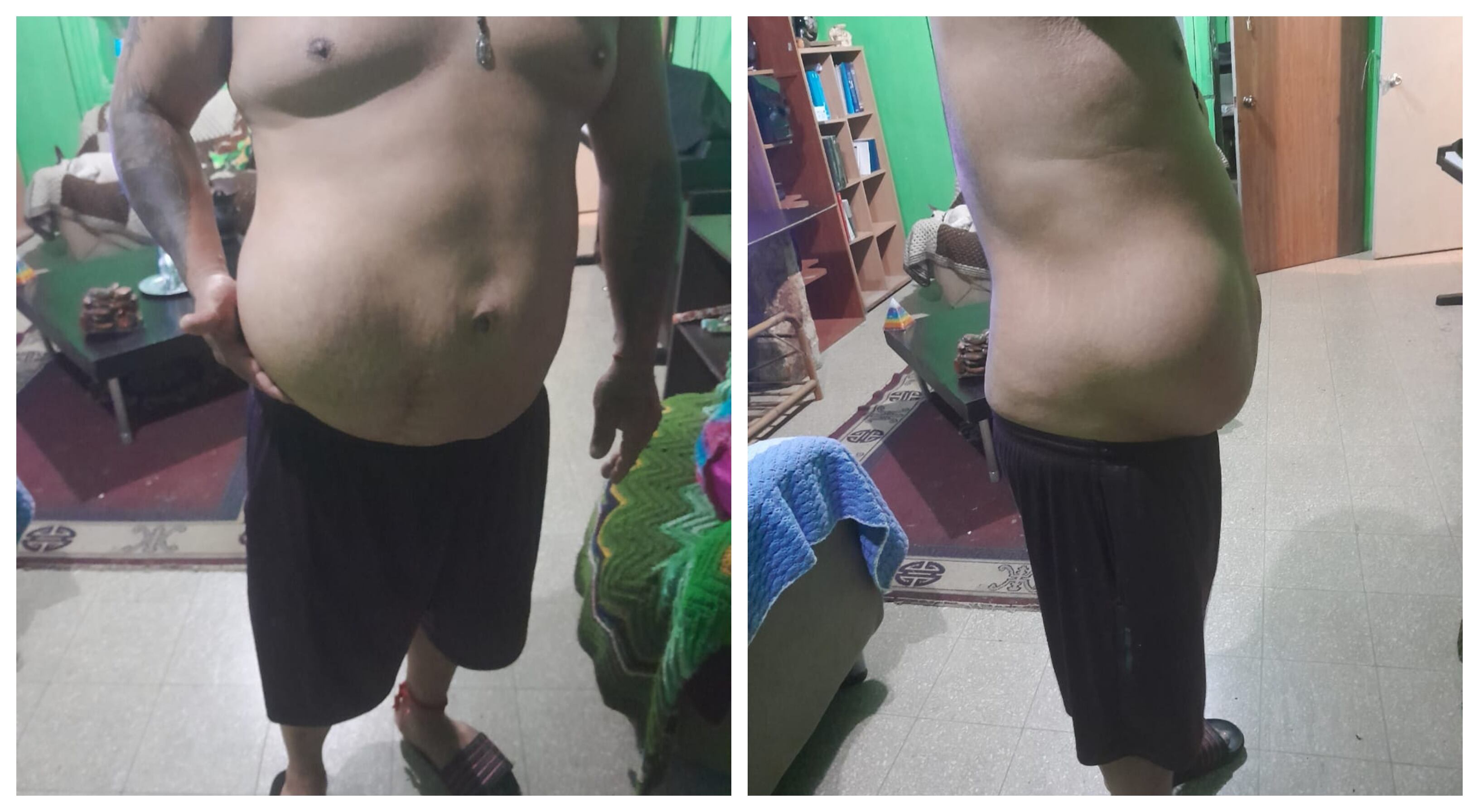El hombre de 35 años asegura que su salud ha ido empeorando con el pasar el tiempo, dice que en ocasiones vomita sangre y que se desmaya mucho. Además, dice que el bulto en su estómago le causa dolores y muchas incomodidades, por lo que no puede llevar una vida normal.