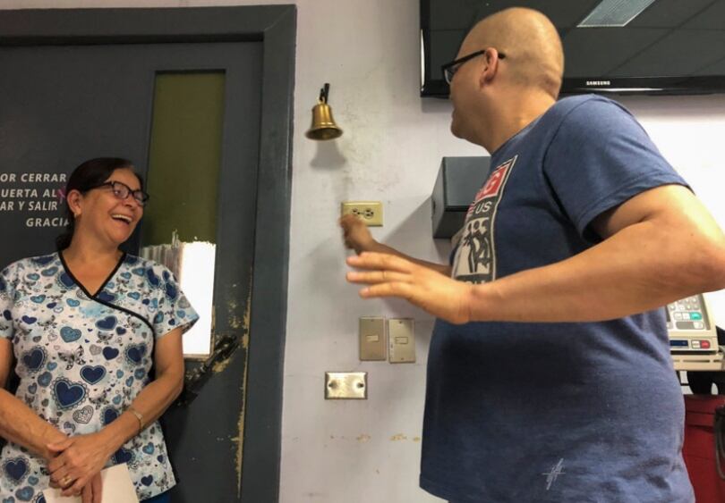Este paciente de 36 años lo vivió en Estados Unidos con un tío abuelo suyo, quien ese día tocó una campanita y recitó un poema, cuya traducción dice: “Tres veces toca esta campana, tócala bien, su replicar dice claramente: ¡Mi tratamiento terminó, su curso acabó, y ahora sigo mi camino”.