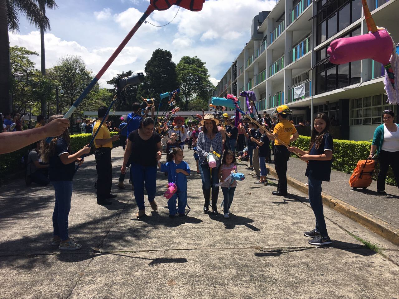 El desfile empezó después de las 10 de la mañana con la escolta de los bomberos y estudiantes del Colegio Británico de Costa Rica, quienes vigilaron que ningún caballo se portara mal y se saliera de la ruta.