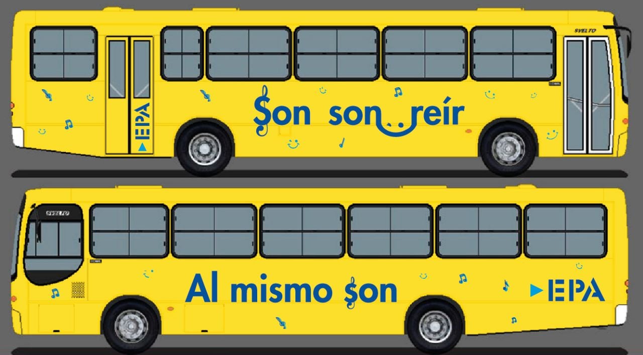 El bus será muy visible, de color amarillo y dirá : “Al mismo son son son reír” y funcionará de 6:30 a.m. a 2:30 p.m.