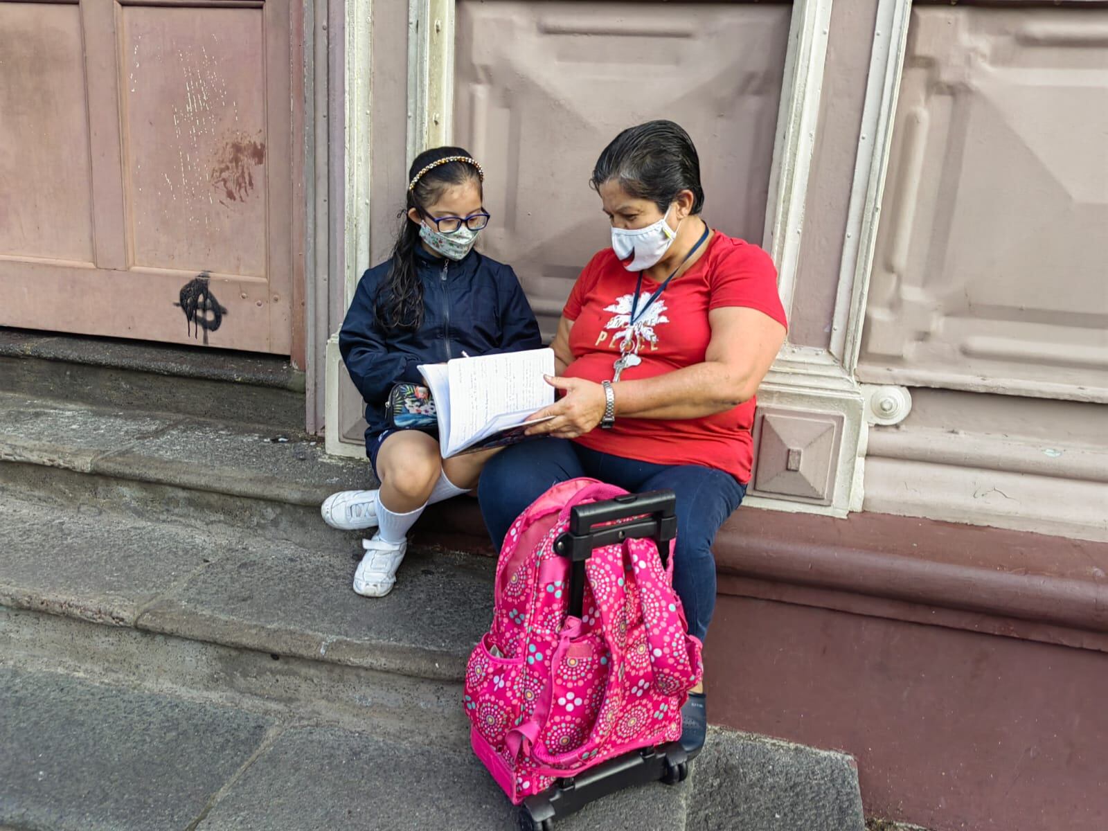 Doña Gilda Rojas, vecina de barrio Aranjuez y quien llevó a su hija, Sofía Espinoza, a clases en la escuela Buenaventura Corrales, conocida como la escuela Metálica, en San José centro, se alegró del regreso de la mascarilla.