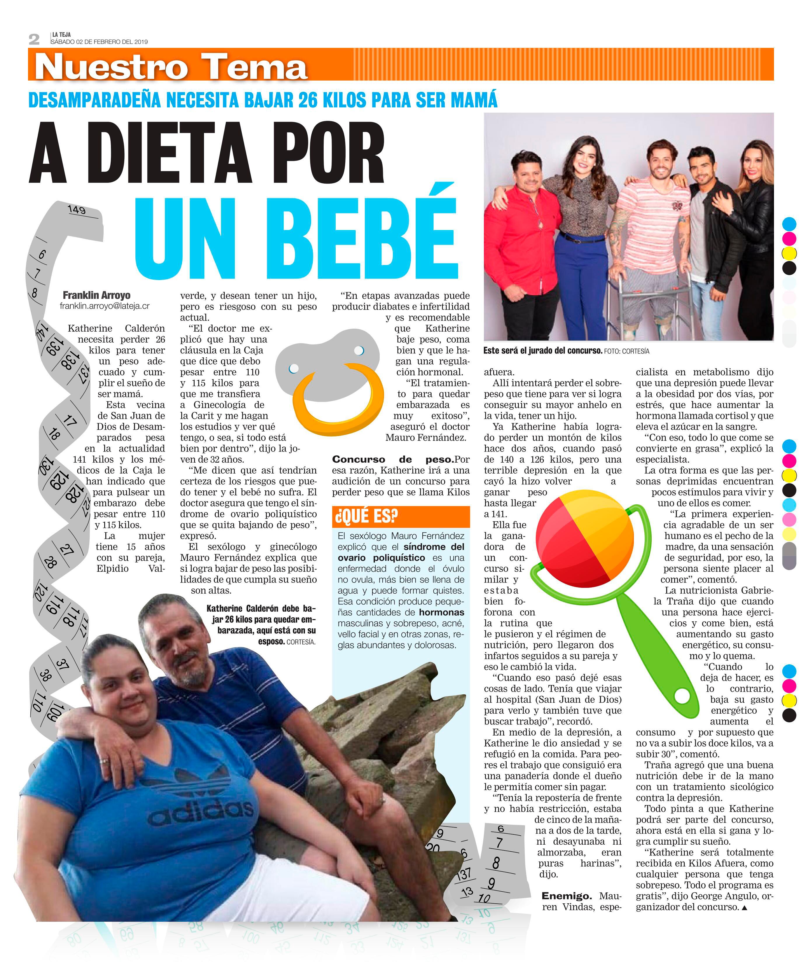 Ellos tienen cinco años de casados y en el 2016 solicitaron una referencia en La Carit para entrar a un programa de ayuda a las parejas que tienen problemas de fertilidad y lo primero que le dijeron fue: ‘baje de peso’.