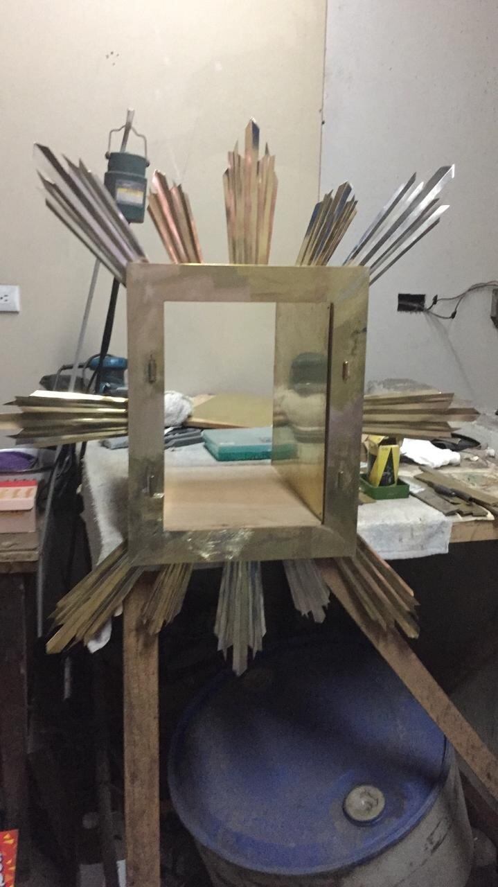 Según nos contó Soto, comenzó a trabajar en este sagrario (lugar donde se guarda el copón con las hostias consagradas) anticos de la fiesta del Corpus Christi en junio anterior y la fe es tenerlo listo el viernes 30 de agosto.