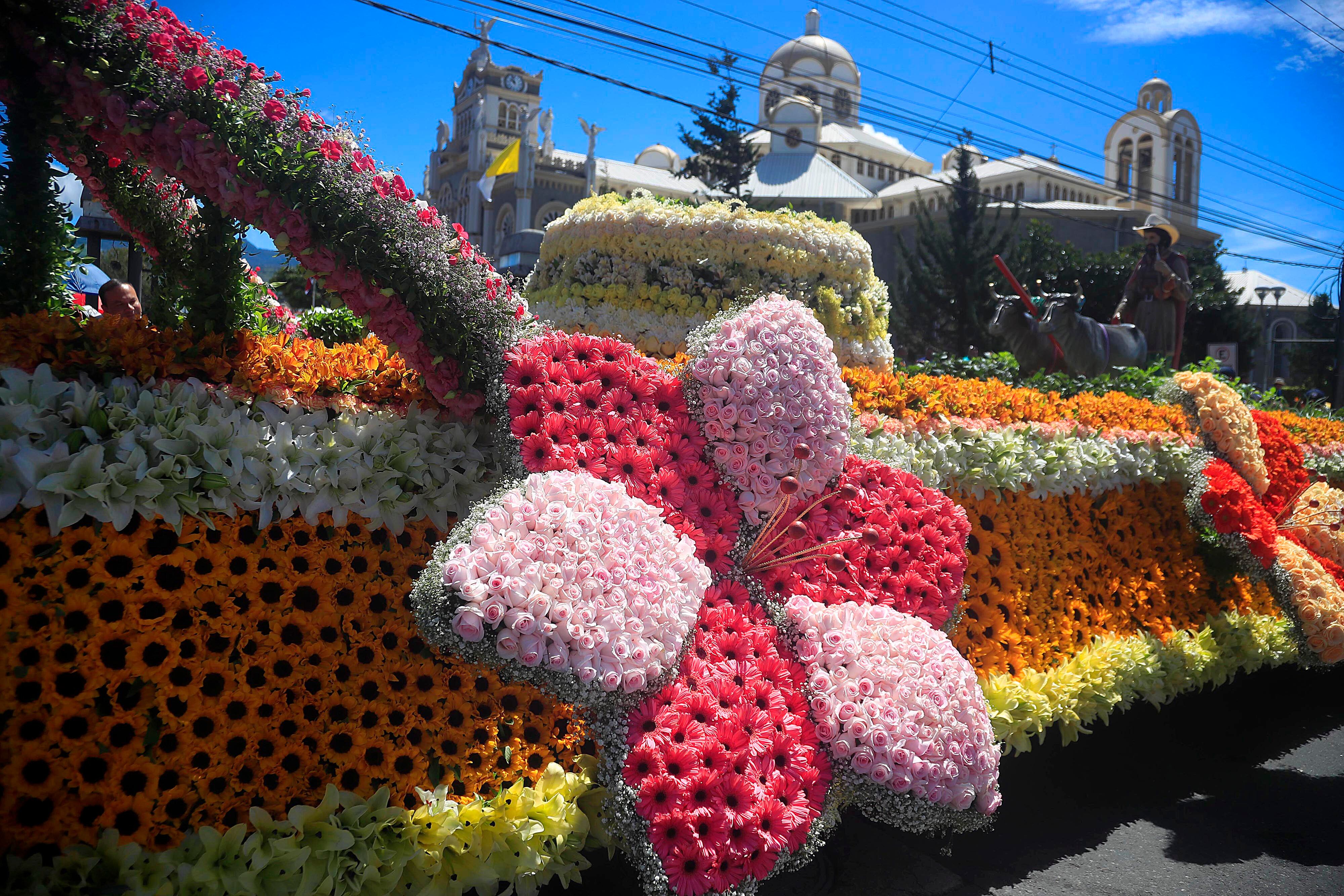 La hermosa carroza fue preparada por 35 personas y contó con 25 mil flores de distintos tipos, entre ellas girasoles, claveles, gladiolas, rosas. En total fueron 25 variedades de flores.