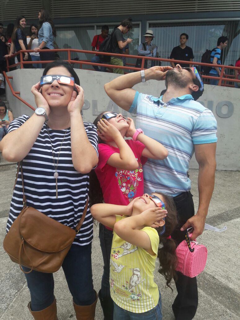 “Es que mi esposa y yo vivimos con once años el eclipse total que tuvimos los ticos en 1991, recordamos que fue una gran fiesta en nuestras casas, por eso quisimos compartir este eclipse parcial con nuestras hijas, es una muy buena oportunidad para que aprendan mucho sobre eclipses de una forma alegre y entretenida”, afirmó don Allain.