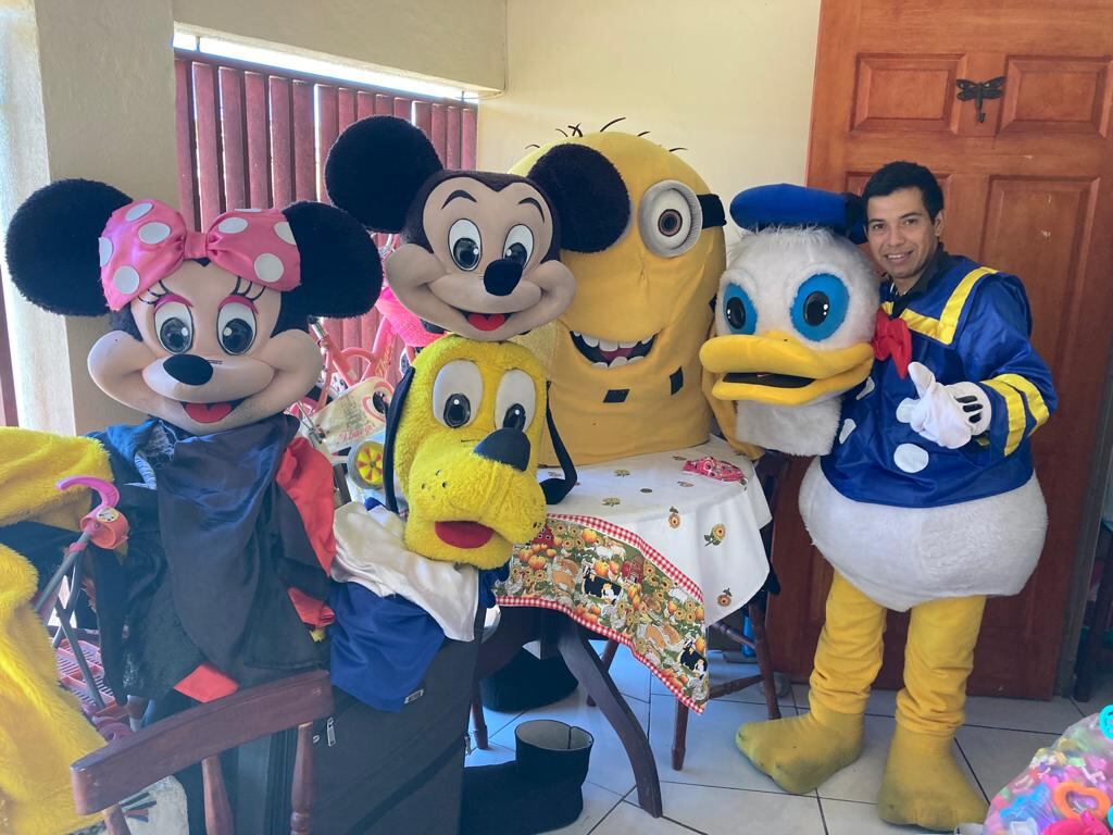 Ese primer año, una amiga viajó a Perú y vio los trajes de Mickey, Minnie y Pluto y se los trajo y le dio chance de que se los pagara a poquitos, así fue como los primeros personajes de Disney llegaron a sus manos.