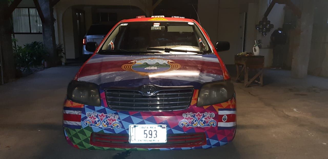 “Luego lo mando a imprimir al estudio 360, de Turrialba, donde me sale en unos ¢250.000, son calcomanías que cruzan cada lado del taxi y otra es para la tapa”, aseguró.